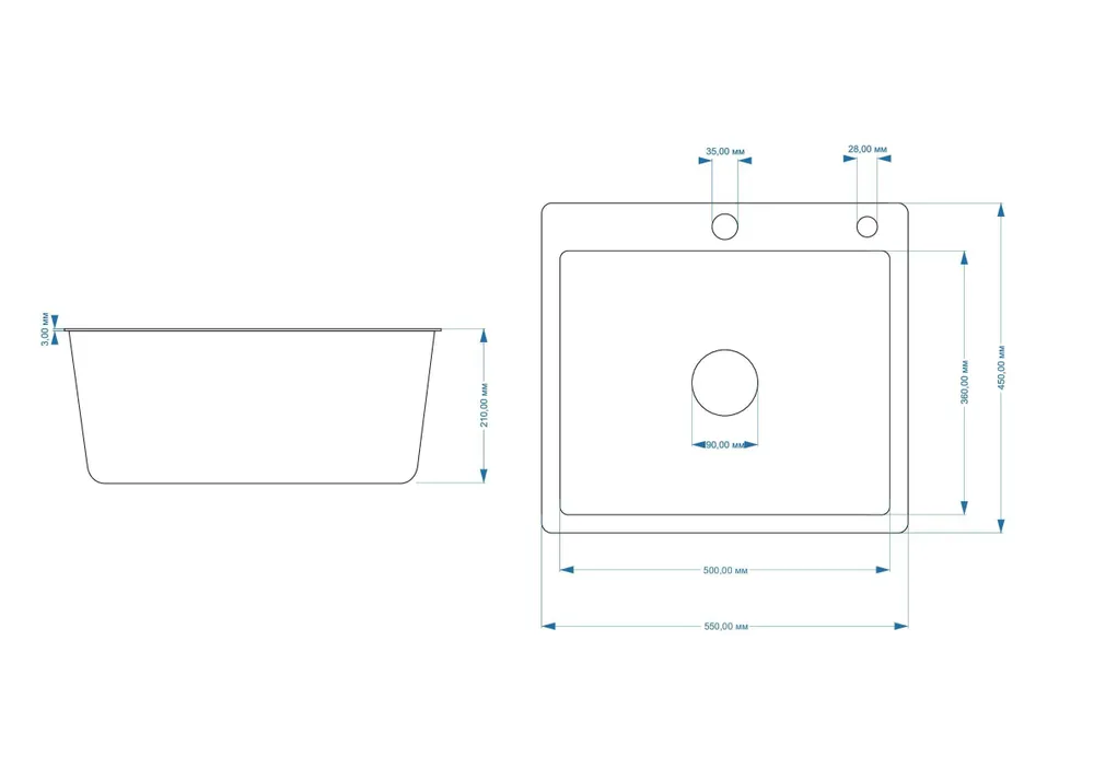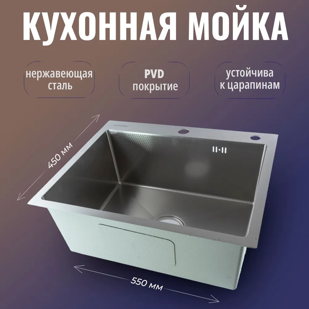 В комплекте: мойка, сифон.
