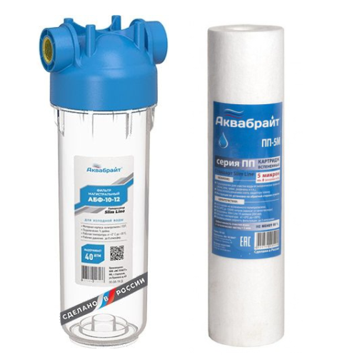 Фильтр 1" магистральный для холодной воды прозрачный корпус Slim Line 10 дюймов Терра групп АБФ-10-1