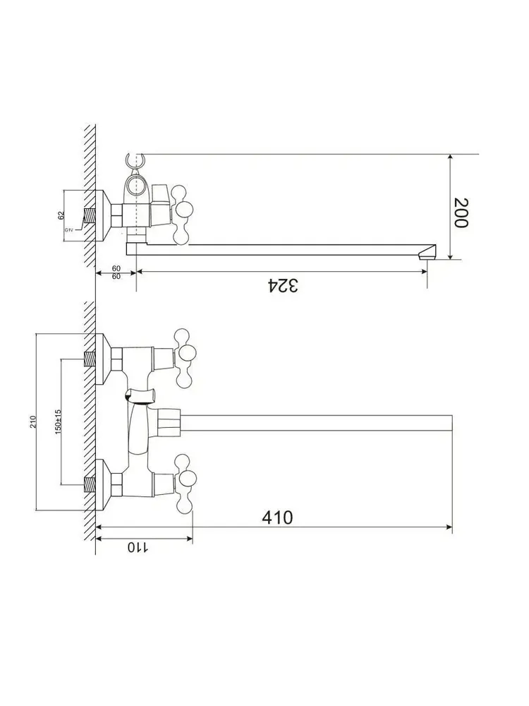 —Смеситель для ванны двухвентильный Rainsberg длинный излив R50223F-1